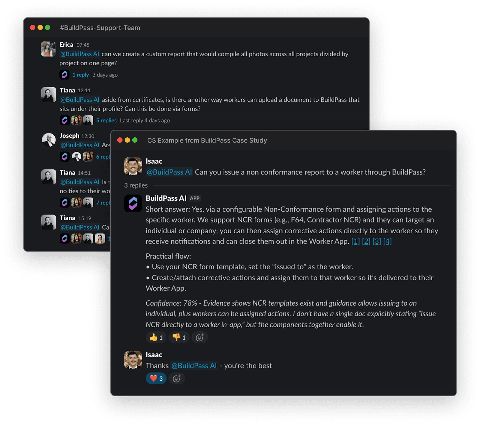 BuildPass has three key Slack channels where questions pile up: